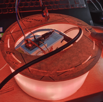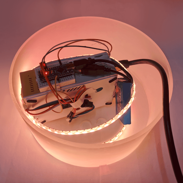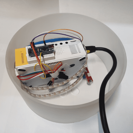 Pack the arduino board, projector, LED strip, battery and other components into an acrylic cylinder.