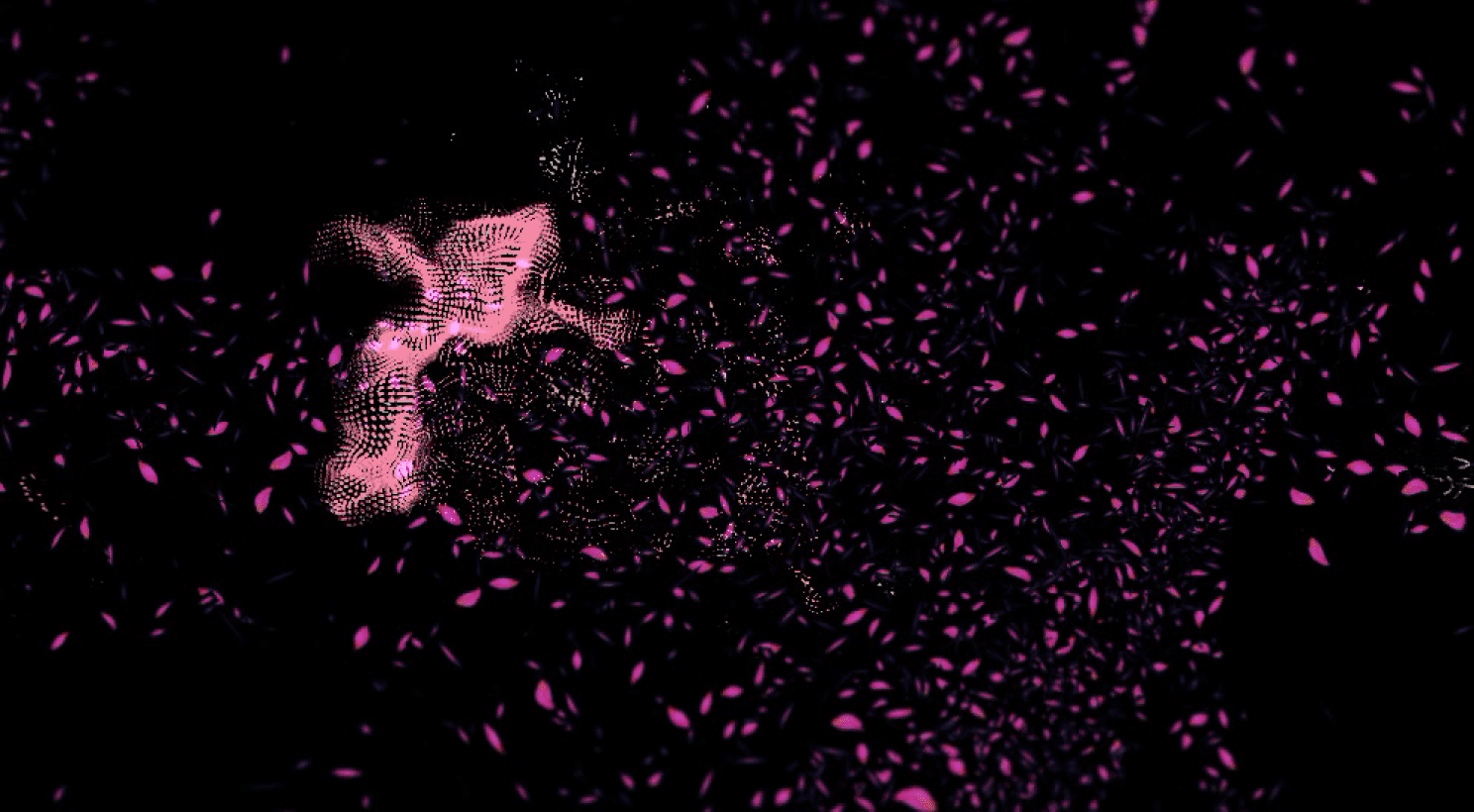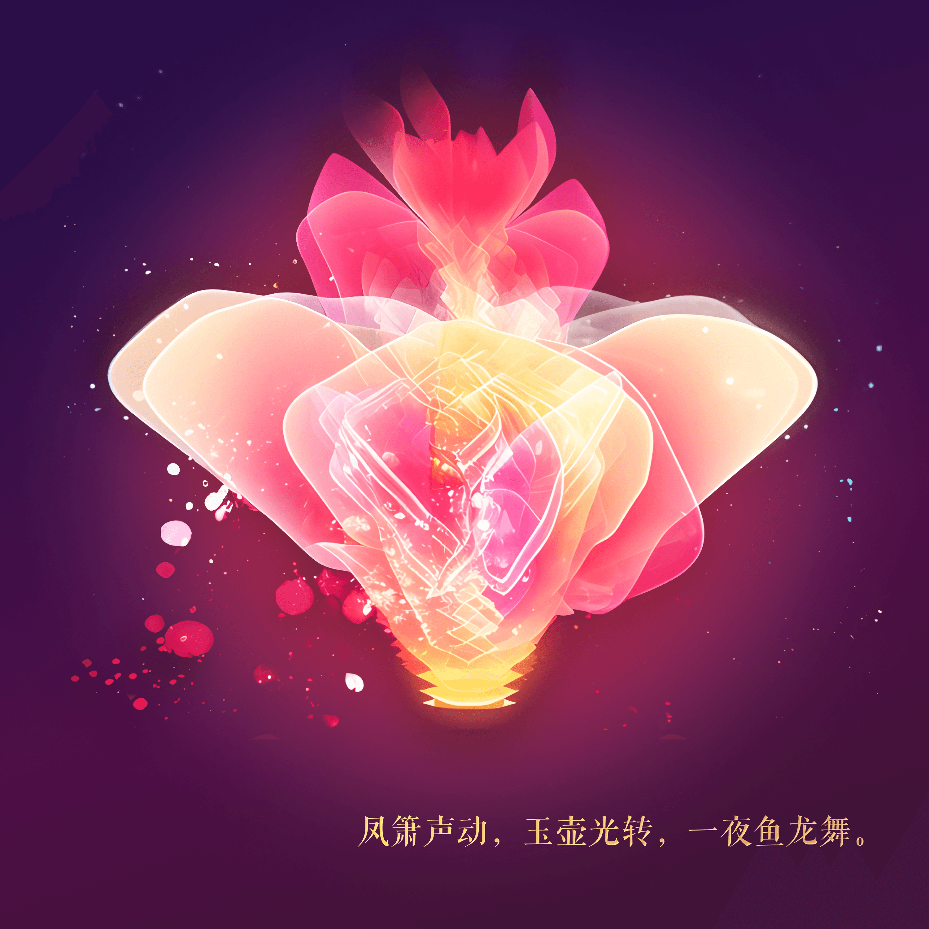 The background of the projection video is lots of lotus petals floating in the air, along with the rhythm of the music.
