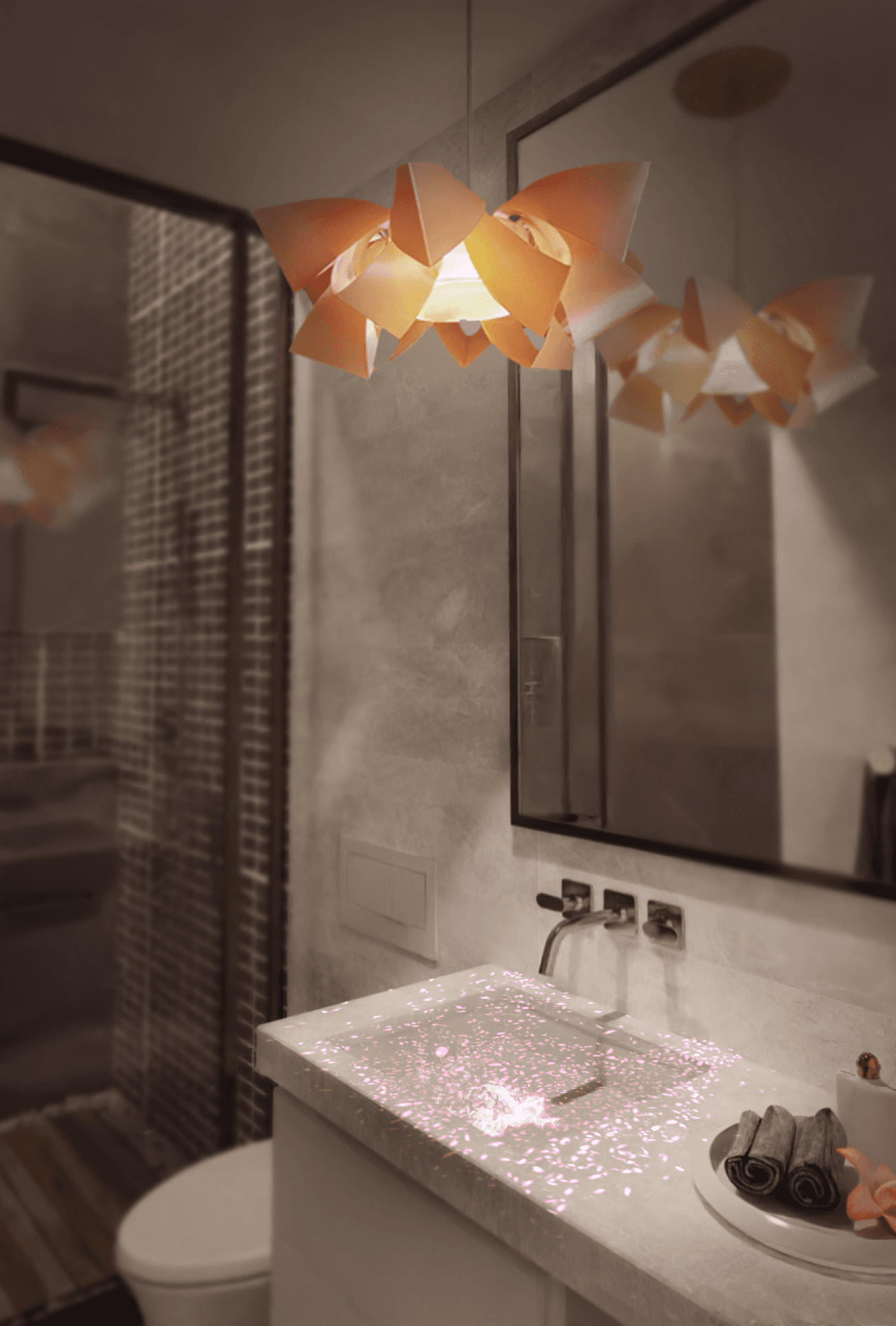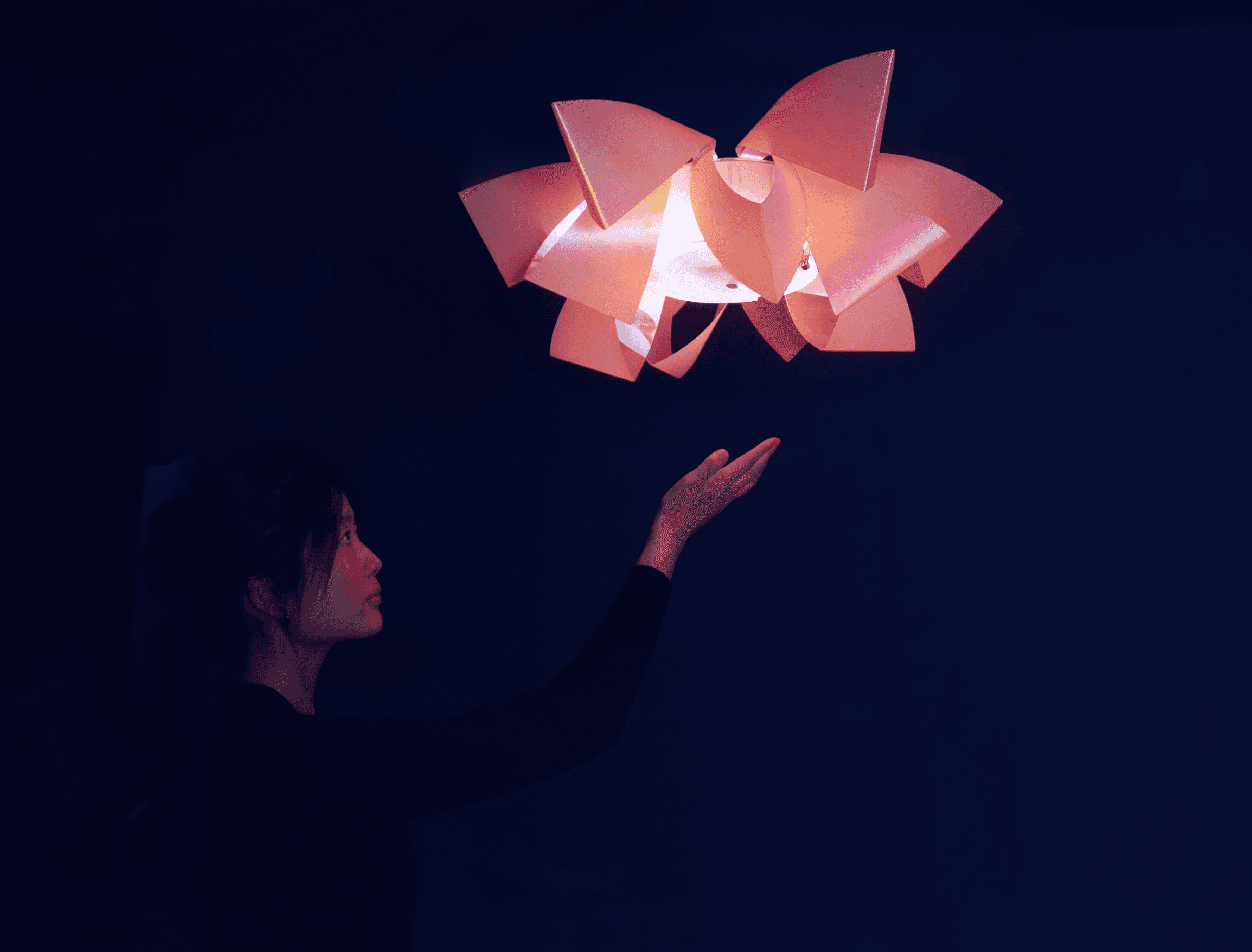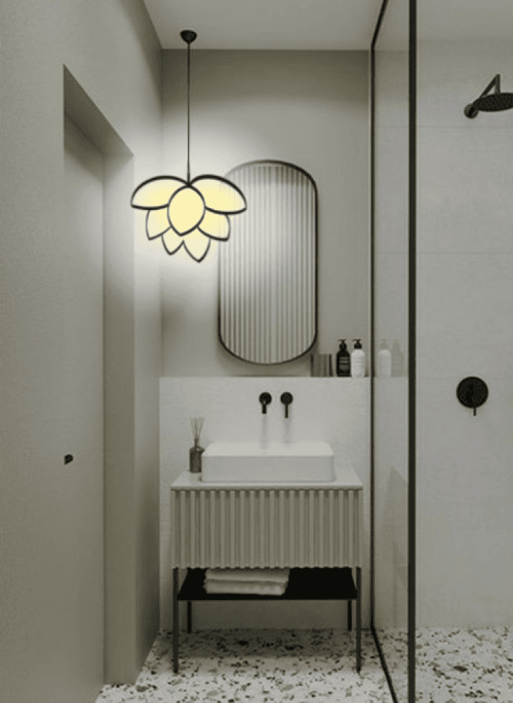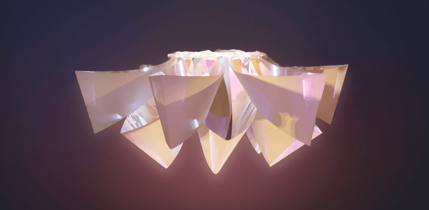 Pendant light in the shape of a lotus flower in 3D.
