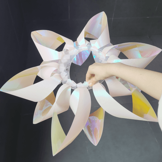 When the fists are clenched, the light patterns freeze in a decorative form