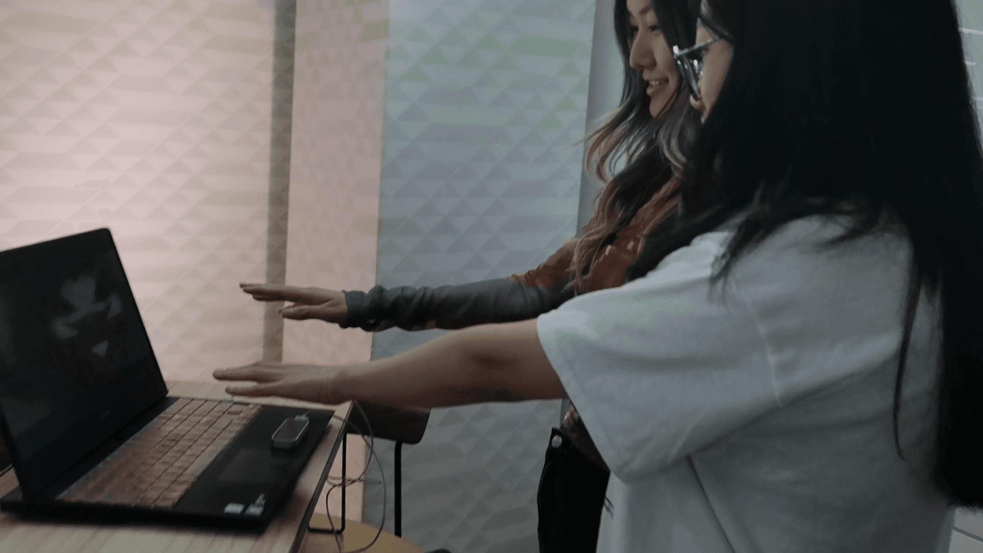 When both hands come close, the background image transforms into the surrounding environment