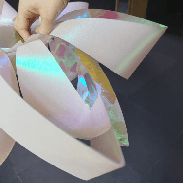 Stick the holographic clear film onto the clear PET film.