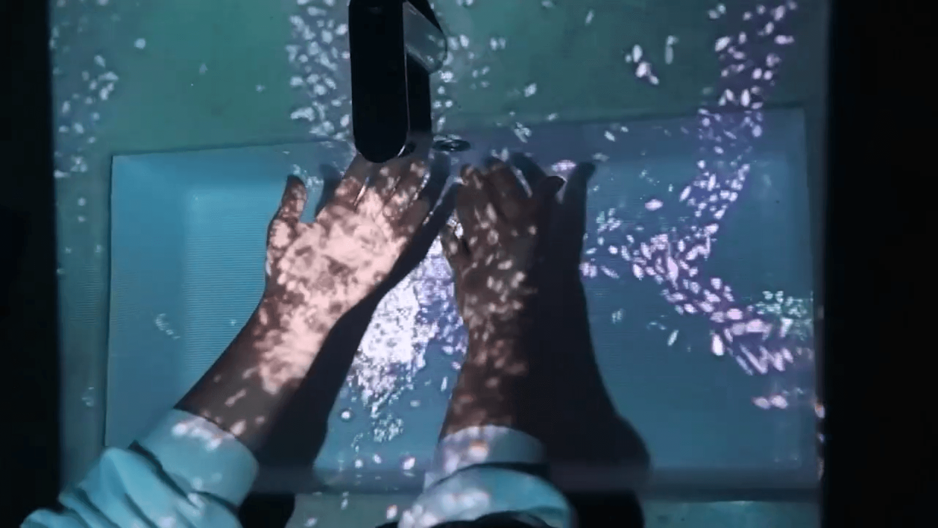 Person can interact with the projection while washing up
