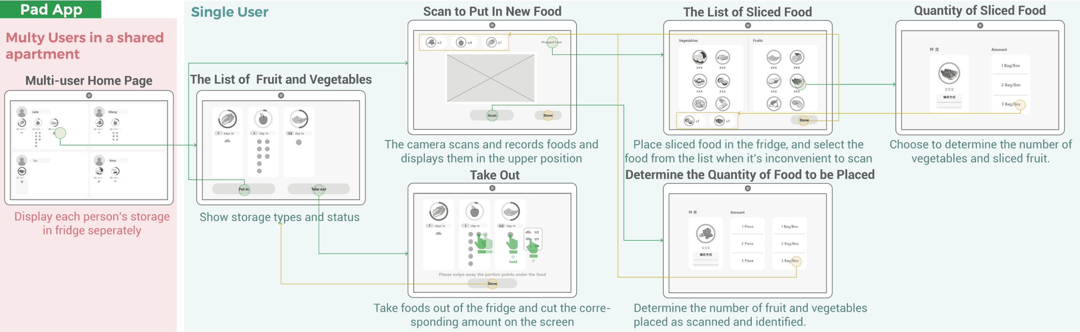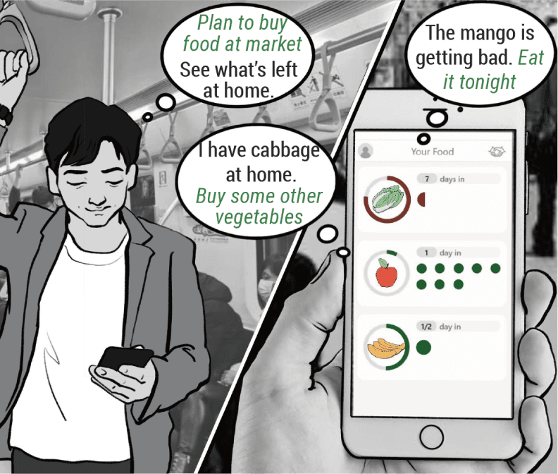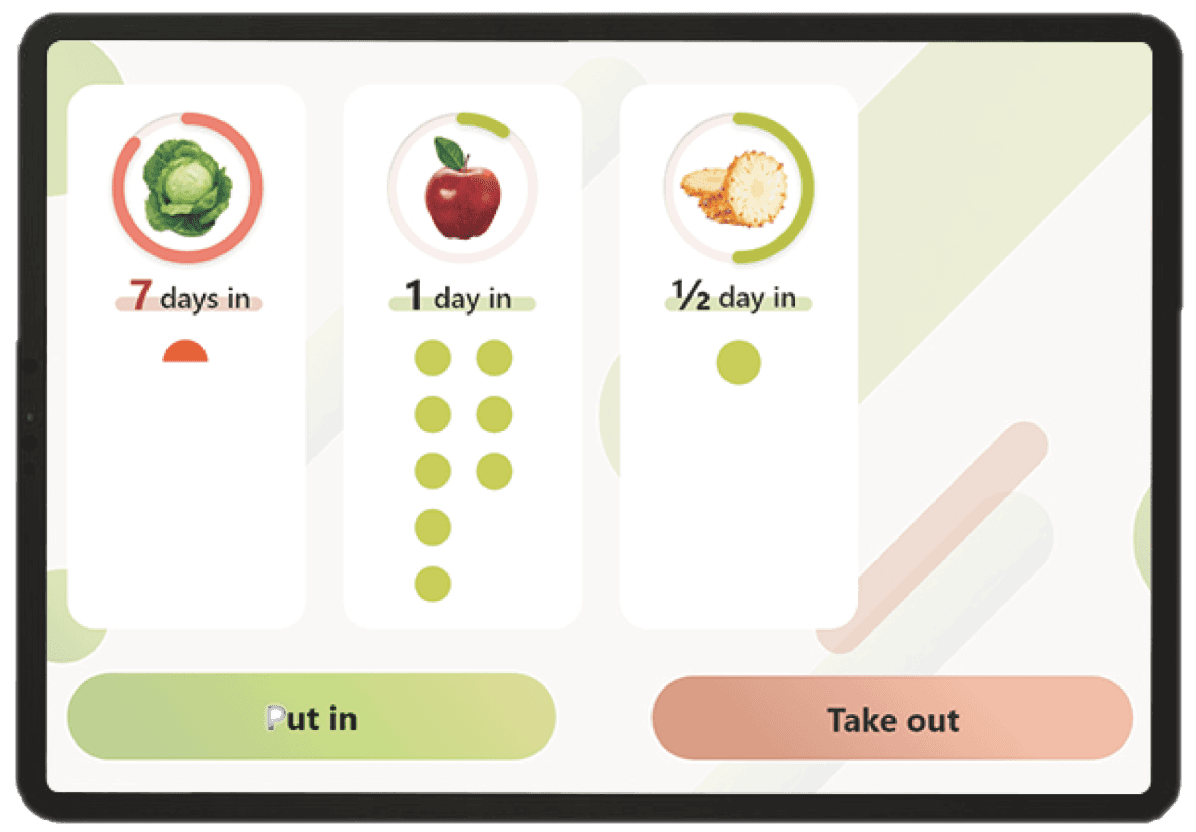 The App automatically produces a list of newly purchased fruit and vegetables, merges it with the old list, and informs the user of the storage time and method