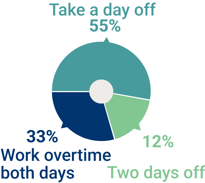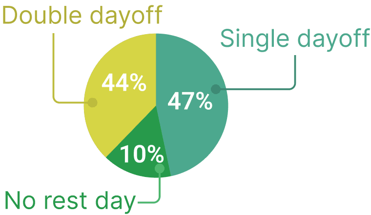 54% population has single-day off weekly