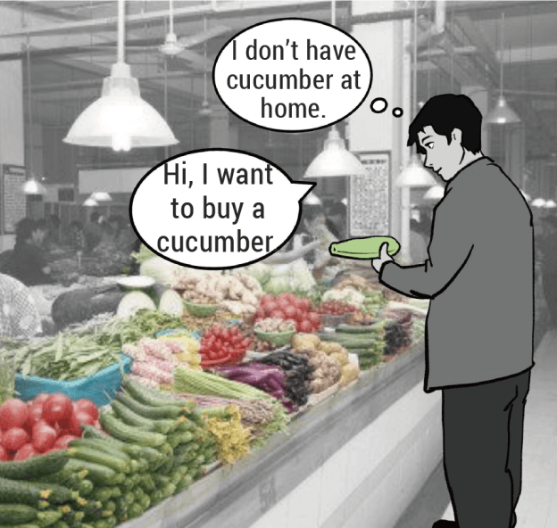 Not knowing what's left in the fridge before he buys new foods