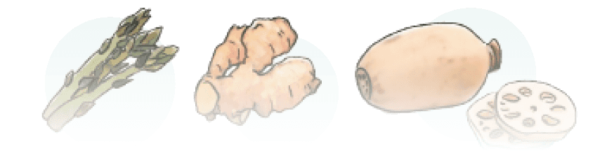 asparagus, ginger, lotus root